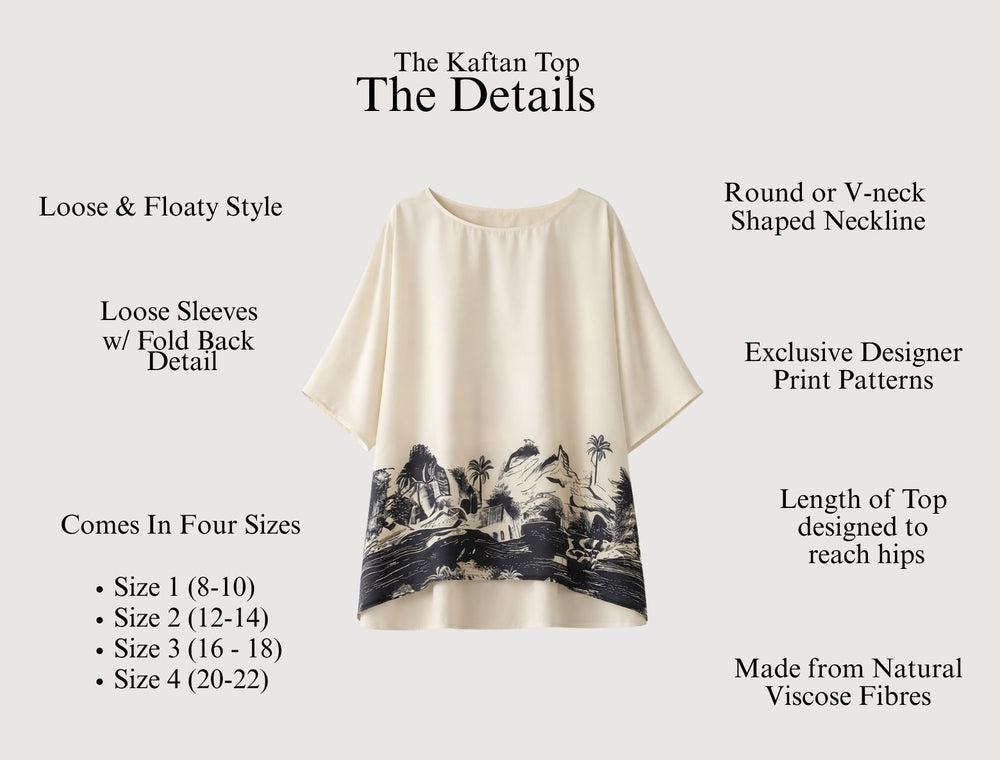 Sometimes a full‑length kaftan can feel a little too dramatic, formal, or simply not quite right for your everyday mood or the occasion. That’s where the kaftan top shines: it keeps everything you love about traditional kaftans—those gorgeous, statement prints, the amazing floaty movement, the quietly glamorous silhouette—yet delivers it in the more adaptable form of a top. This makes styling far easier across real life: pair it with jeans or shorts for a chic daytime look, layer it under a blazer for work or dinner, or tuck it into a sleek skirt for events. In short, the kaftan top lets you wear the spirit of kaftan dressing without committing to a full‑length piece, giving you more versatility, more occasions, and more confidence to mix and match, all while staying true to luxurious, easy elegance.